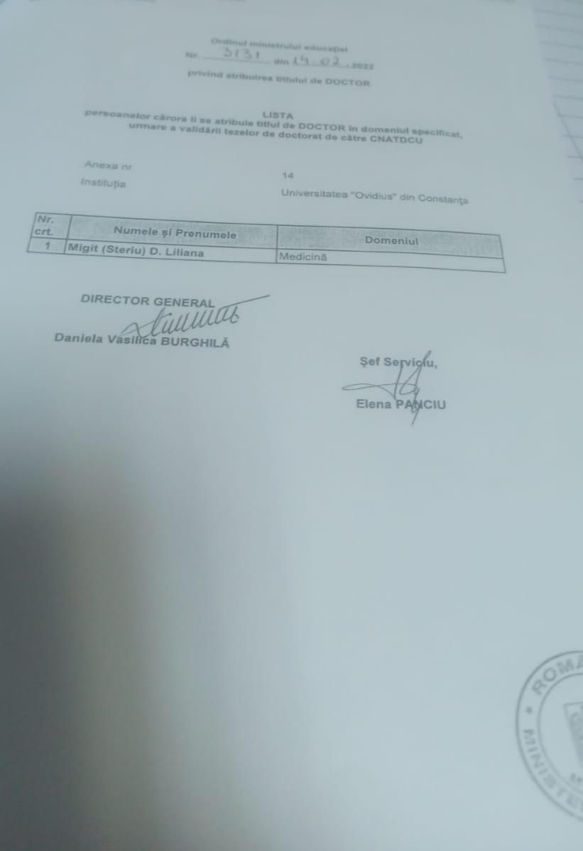 OMEN - Nr. 3184 din 06.02.2015 - privind atribuirea titlului de DOCTOR